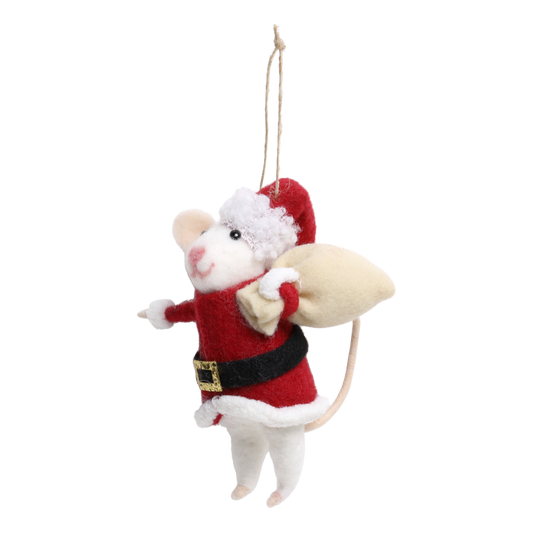 Anhänger Filzmaus, Weihnachtsmann-Kostüm, Geschenksack von Chic Antique