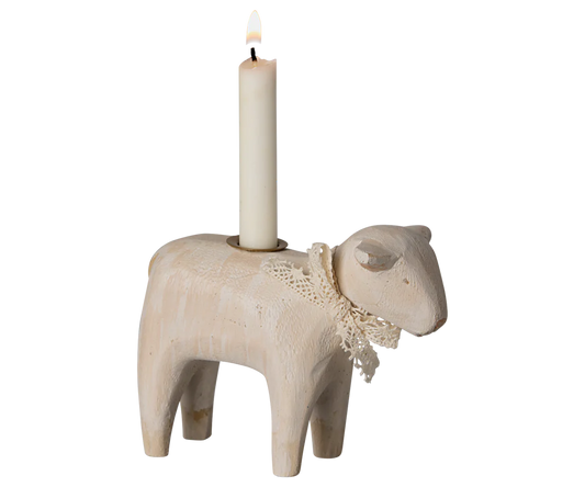 Bitte kontaktiere uns - wir bestellen gern für Dich nachMaileg Holzlamm, Lämmchen, Kerzenhalter, natur, weißes Halstuch