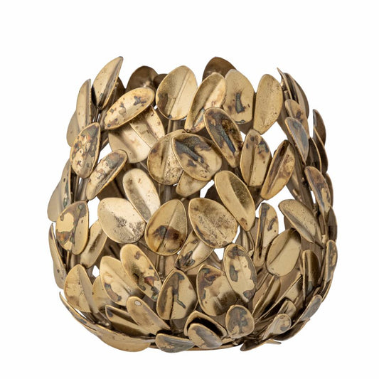 Teelichthalter Cherina, Metall, messing, goldene Blätter