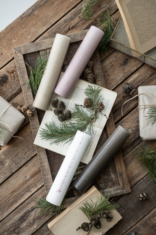 Kalenderkerze, Adventskerze, weiß, Zahlen rot, kursiv