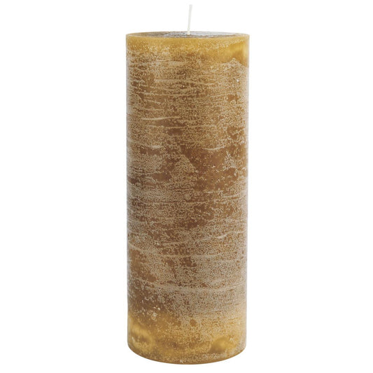 Bitte kontaktiere uns - wir bestellen gern für Dich nachStumpenkerze, Altarkerze, 18cm hoch, mustard, curry, senfgelb