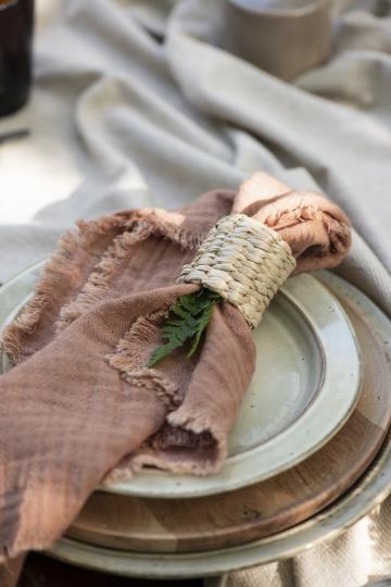 Geschirrtuch Hollie, natur, roter Weihnachtsschmuck an Schnüren 50x70cm