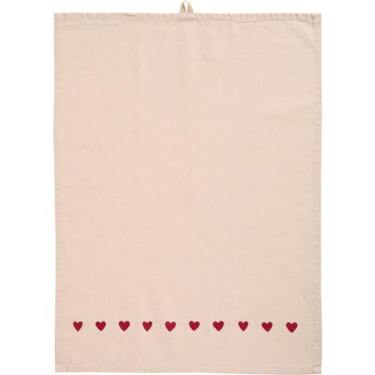 Geschirrtuch Emma, natur, rote Herzen, 50x70cm