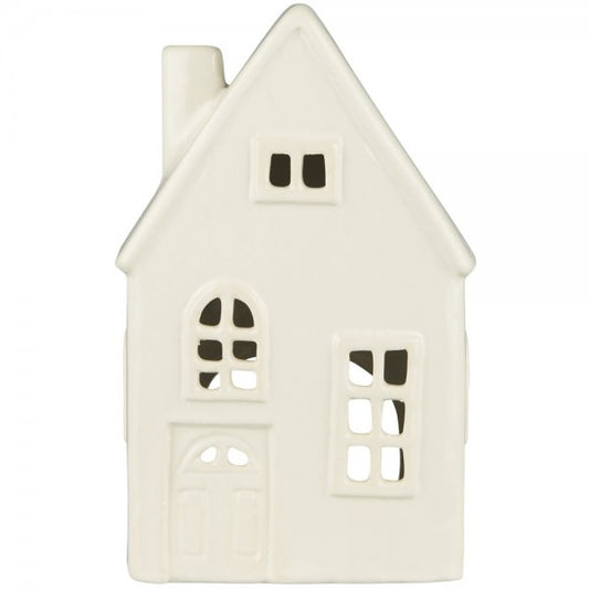 Keramikhaus, Teelichthalter, grüne Tür, Kranz oben