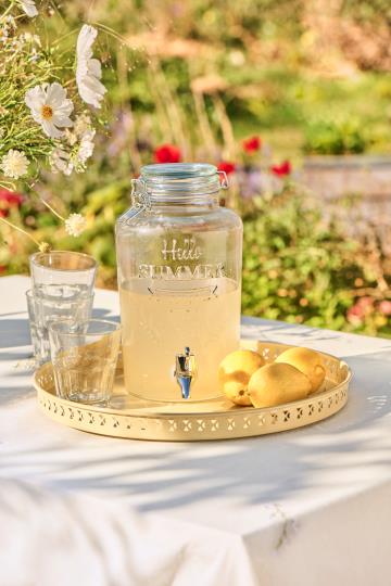 Getränkehalter, Flüssigkeitsspender, Glas, Patentdeckel, Holzhenkel, 8,45 l