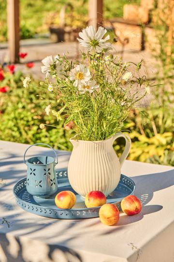 Tablett, gelb, gelochte Kante, Muster im Rand