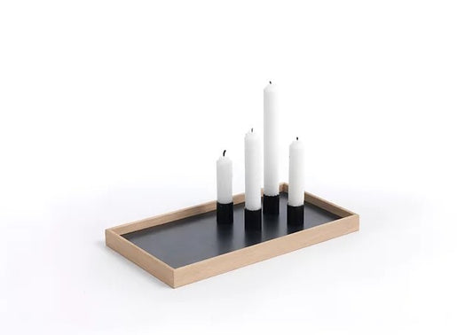Kerzentablett De Luxe, magnetische Kerzenhalter, helle Eiche, Halter schwarz