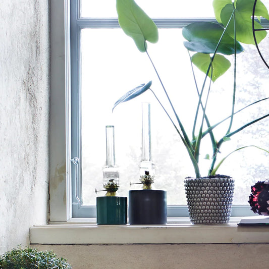 Öllampe Rak Straight aus Metall und Glas, schwarz, groß