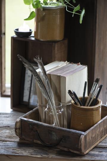 Bitte kontaktiere uns - wir bestellen gern für Dich nachTablett aus alten Ziegelformen, Holztablett, braun mit Metallgriffen
