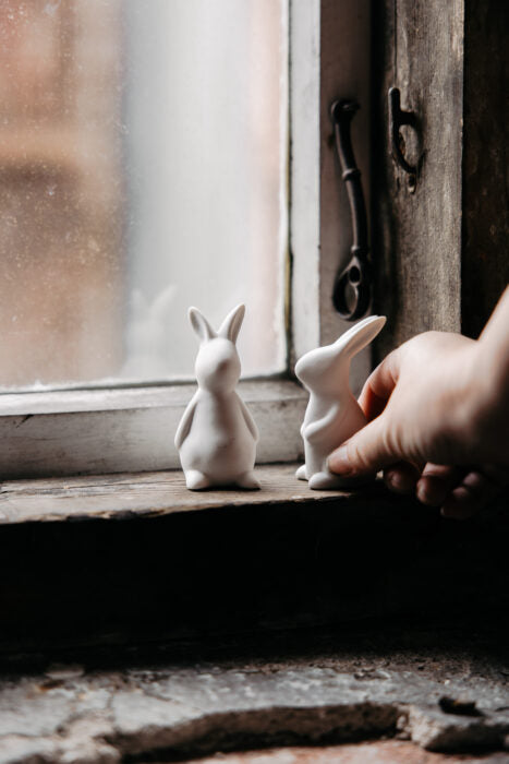 Osterhase Olivia, klein, weiß, stehend, Keramik von Storefactory