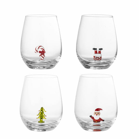 Trinkglas Misa, 4er Set, Glas mit 3D-Motiven