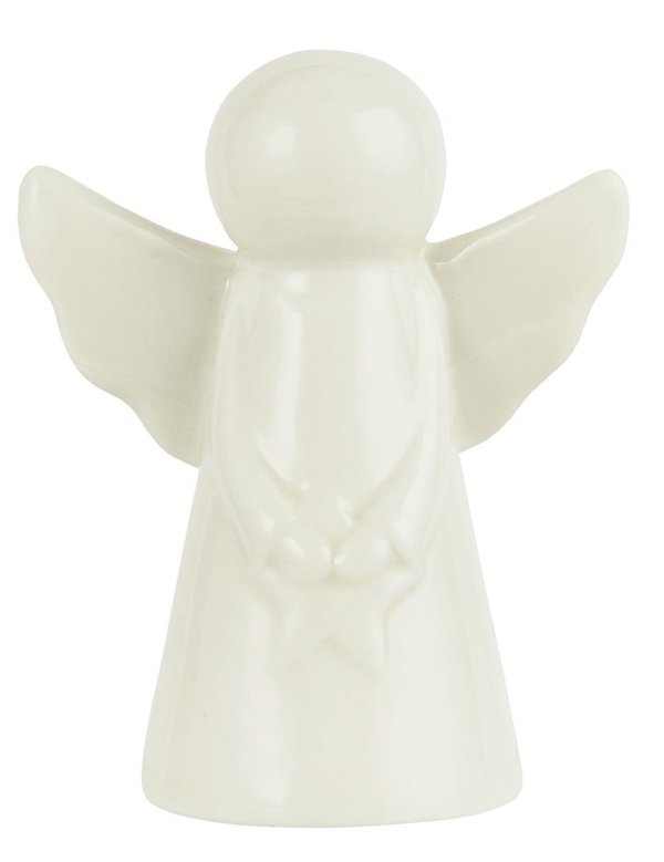 Keramik Figur, Engel, weiß, mit Stern vorn, klein