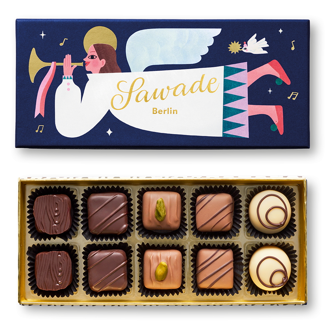 Sawade Pralinenschachtel Engel, alkoholfrei, 10 Pralinen und Trüffel